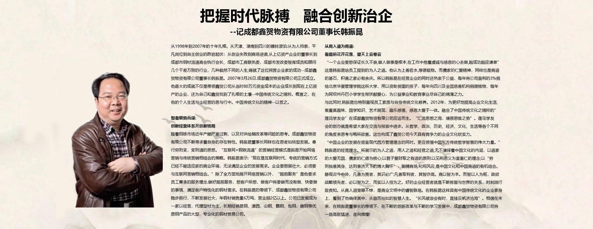 成都鑫賀物資有限公司成立于2007年,注冊資本為500萬元人民幣,是一家以經營鋼材為主的商貿企業。